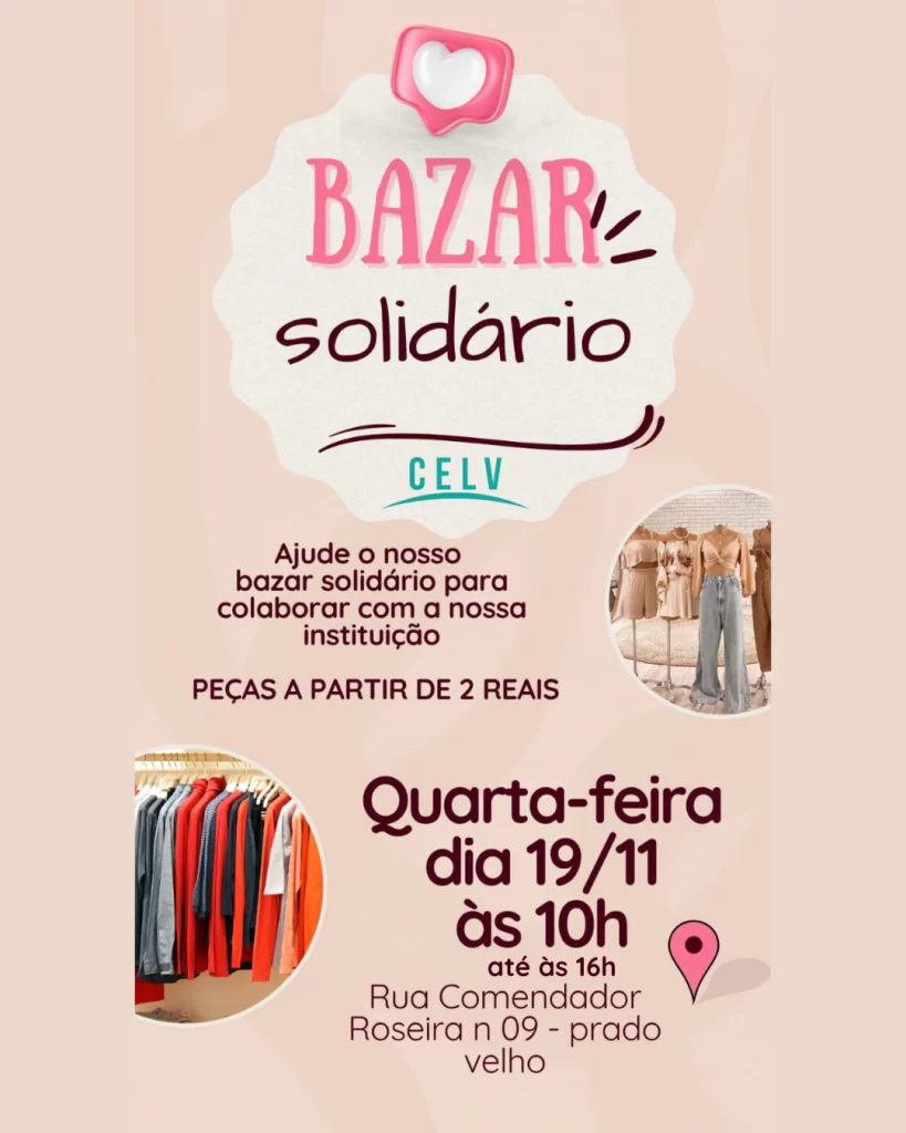 Venha participar do nosso bazar especial e contribuir com a nossa instituição! 💗